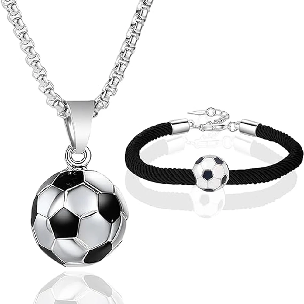 The Football Necklace and Bracelet, the ideal gift for football enthusiasts. Crafted with quality, this necklace and bracelet set showcases a football-shaped design that stands out as a true memento of the sport. It serves not only as a fashion accessory but also as a statement piece for soccer lovers.