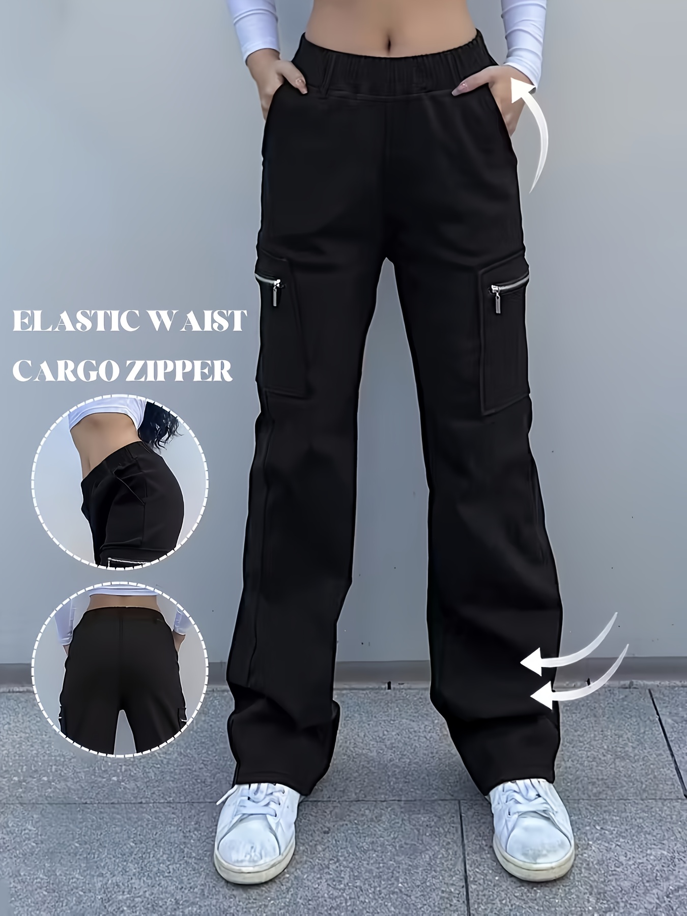 Trendy Straight Leg Cargo Pants - Women's Casual Streetwear Clothing with Y2K Inspiration, Comfortable Design, and Multiple Pockets - Perfect for Daily Wear